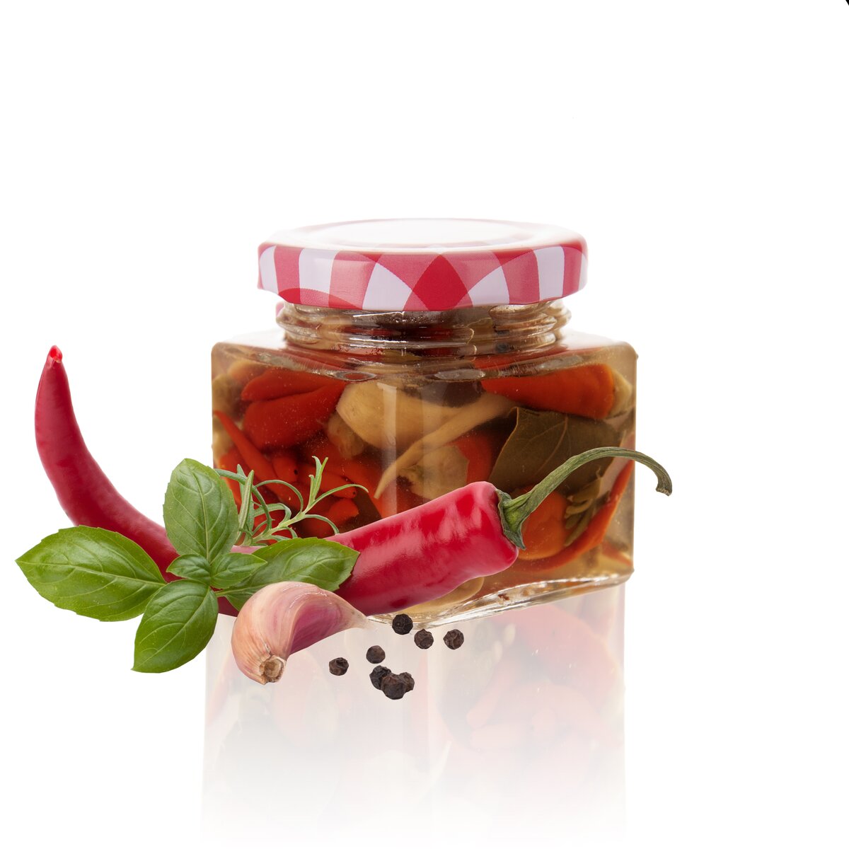 Kód produktu 129719Sada 4 kusů malých hranatých zavařovacích skleniček s károvaným víčkem, o objemu 75 ml. Ideální pro uložení koření, zavařování pečeného čaje, pesta a jiných pochutin.