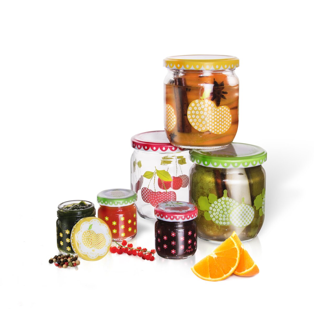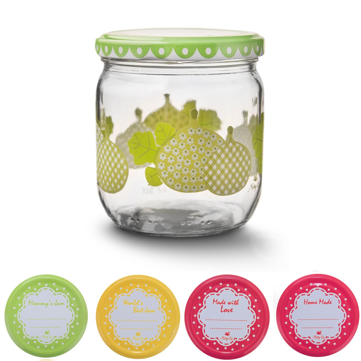 Kód produktu 129710Kulatá zavařovací sklenice s potiskem, o objemu 425 ml, s barevným víčkem na závit ideálním k popisu doby plnění apod. Ideální k zavařování kompotů z drobnějšího ovoce, marmelád, čalamád i paštik.