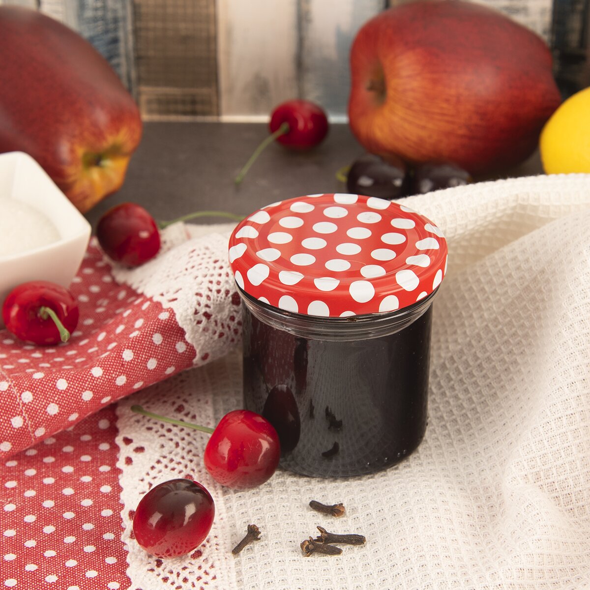 Menší zavařovací víčka se potiskem puntíků jsou nezbytným pomocníkem při zavařování, zakonzervování vaší úrody ze zahrádky, ovoce a zeleniny z farmářských trhů nebo přímo od pěstitelů, při výrobě čalamády, domácích marmelád, kompotů, sirupů, ale i k uskladnění ořechů, luštěnin nebo sušených bylinek, křížal i sušených hub.