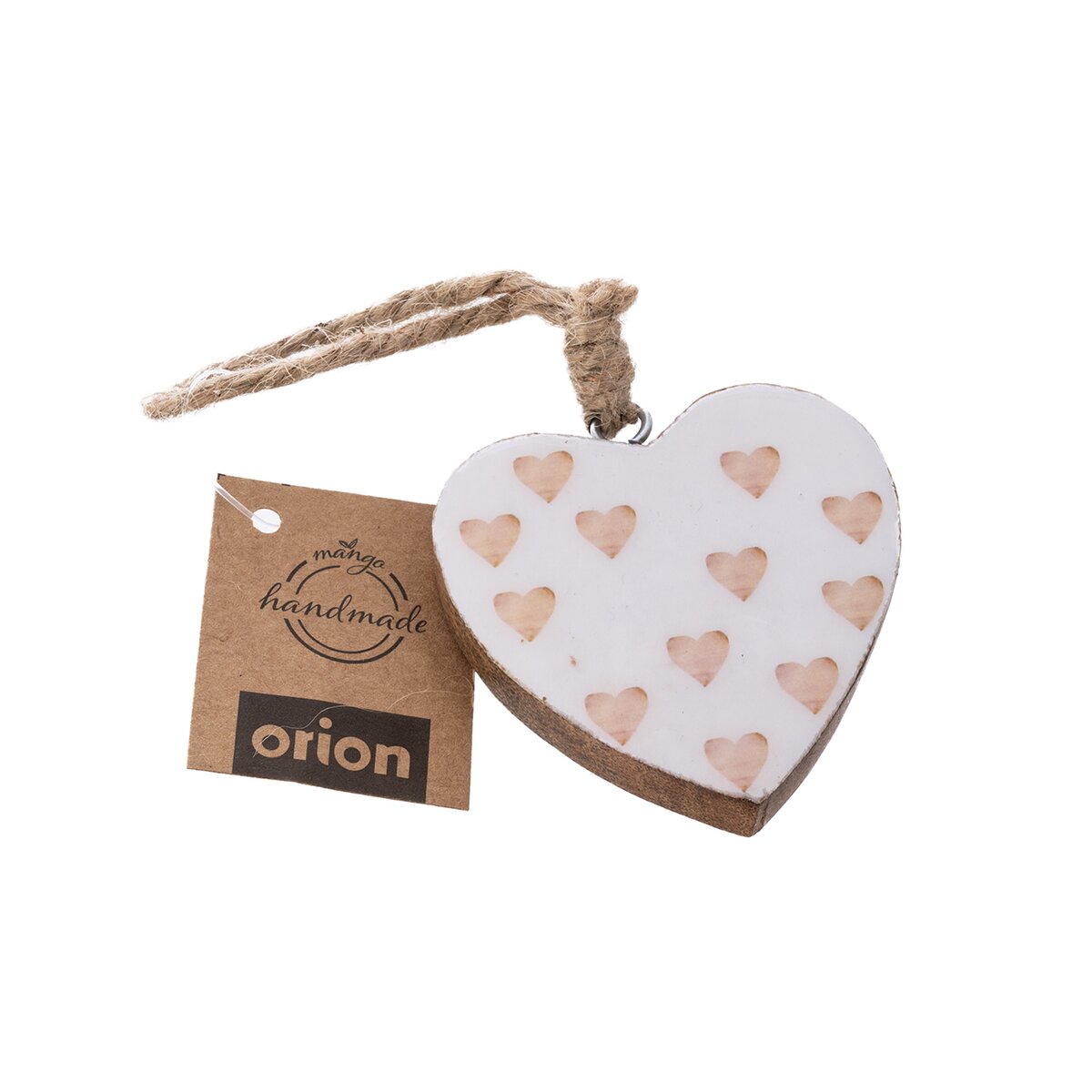 Kód produktu 351907Závěsná dekorace srdce z mangového dřeva, vhodná k celoročnímu využití i jako dárek.