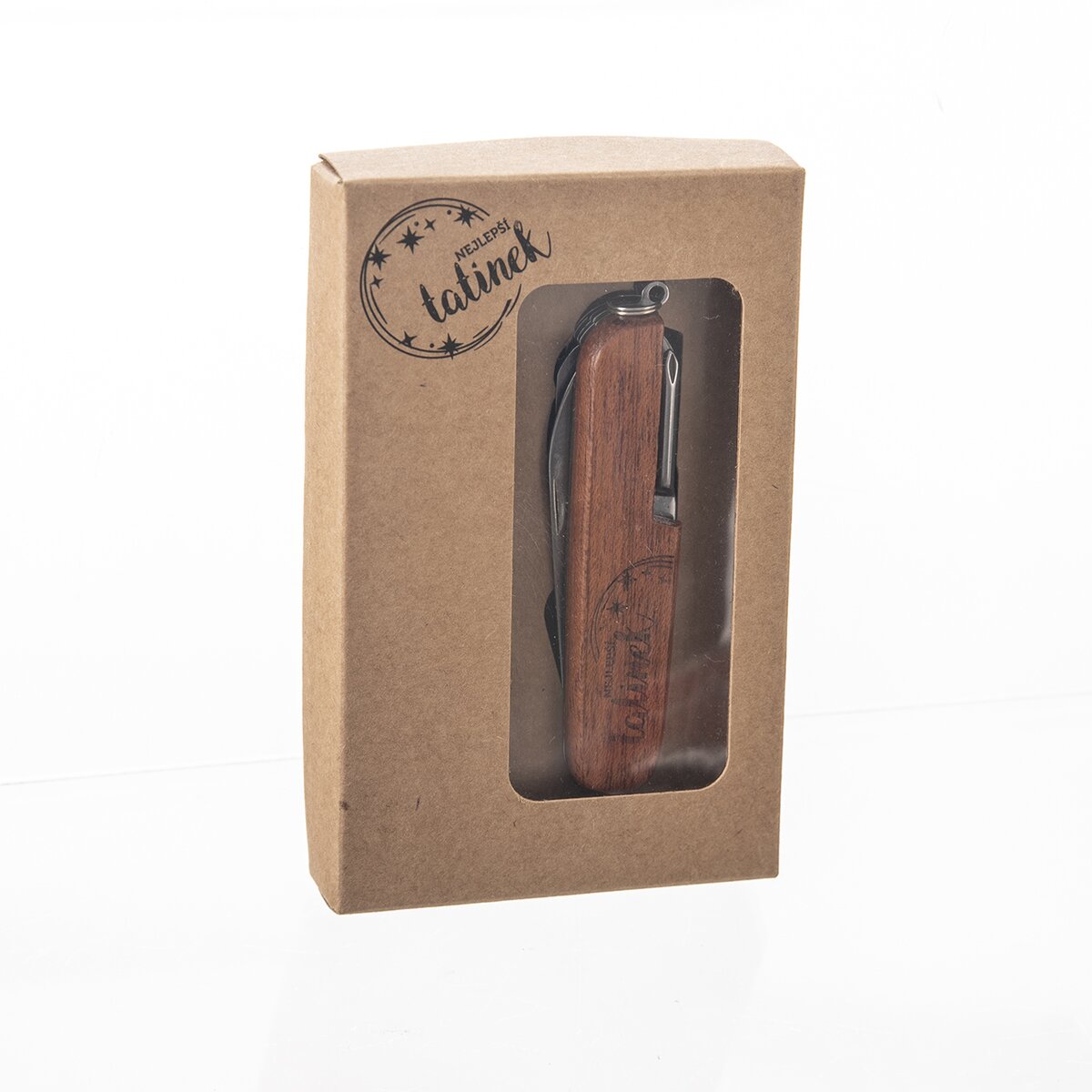 Kód produktu 842402Skládací nůž NEJLEPŠÍ TATÍNEK, s hladkým nerezovým ostřím a dalšími nástroji s mnoha funkcemi. Je opatřený dřevěnou rukojetí, bude stylovým dárkem pro každého tatínka.