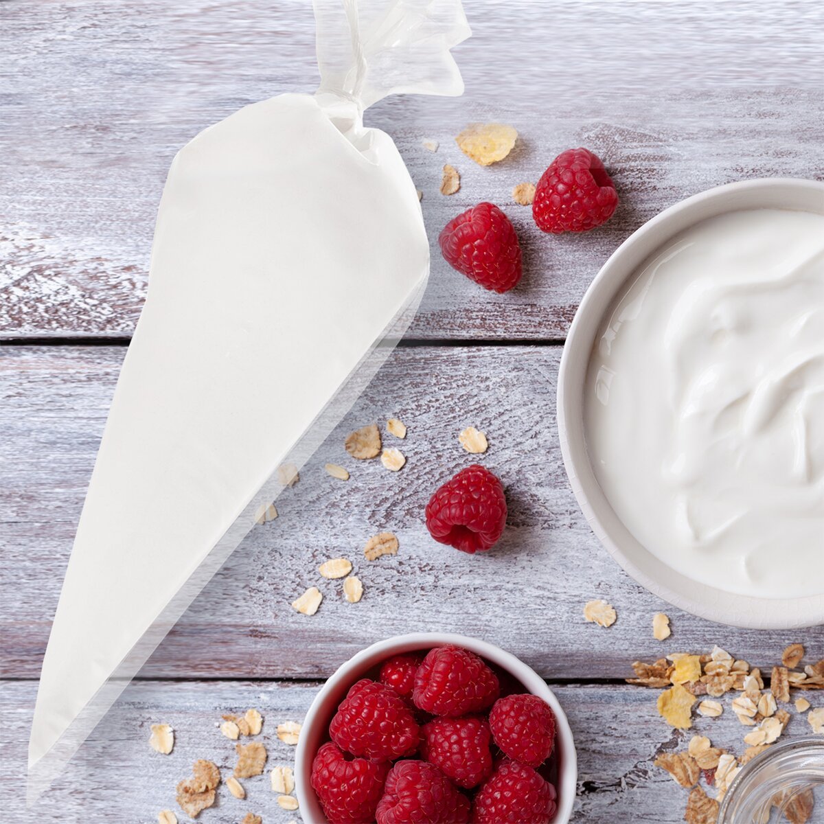 Sada 50 kusů sáčků na roli, kde stačí jednotlivé sáčky odtrhnout podle perforace, je určena ke zdobení krémem, šlehačkou i pomazánkou. Sami si odstřihnutím špičky vytvoříte takový otvor, jak zrovna potřebujete, případně do něho můžete vložit nerezovou špičku a dekorovat zákusky či dort.