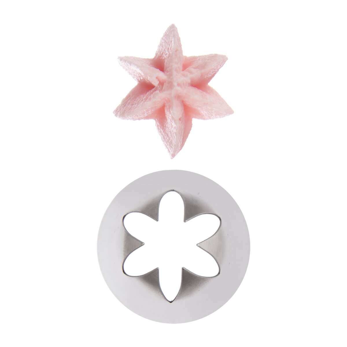 Kód produktu 153041Zdobicí nerezová špička se 6 cípy je vhodná ke zdobení dortů, cupcaků a zákusků krémem nebo šlehačkou.